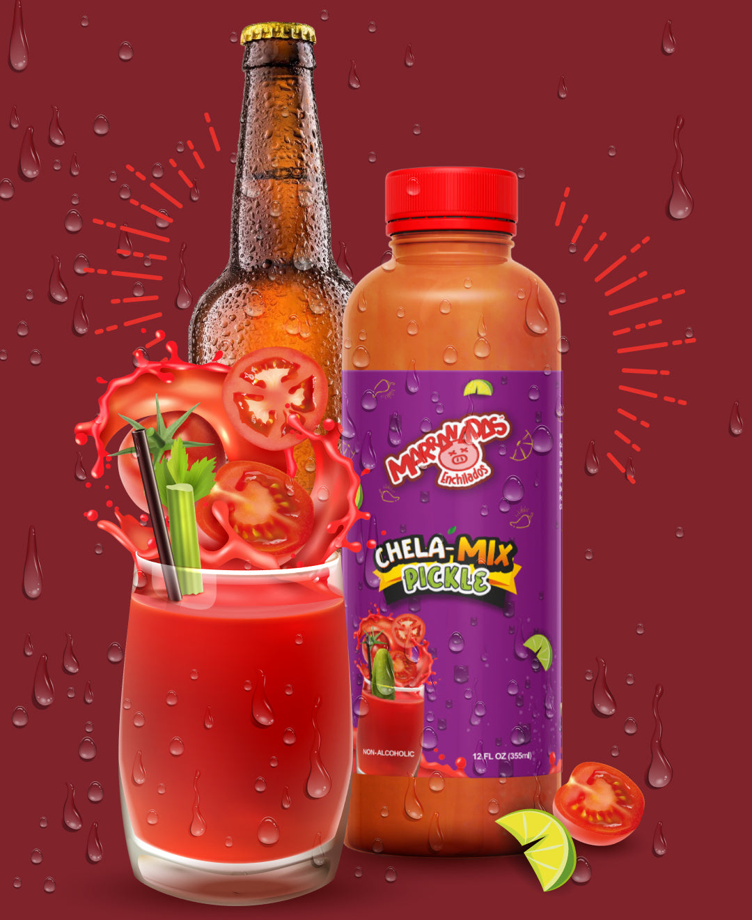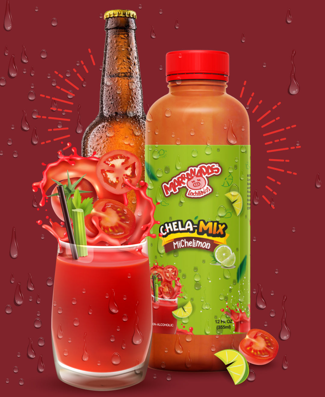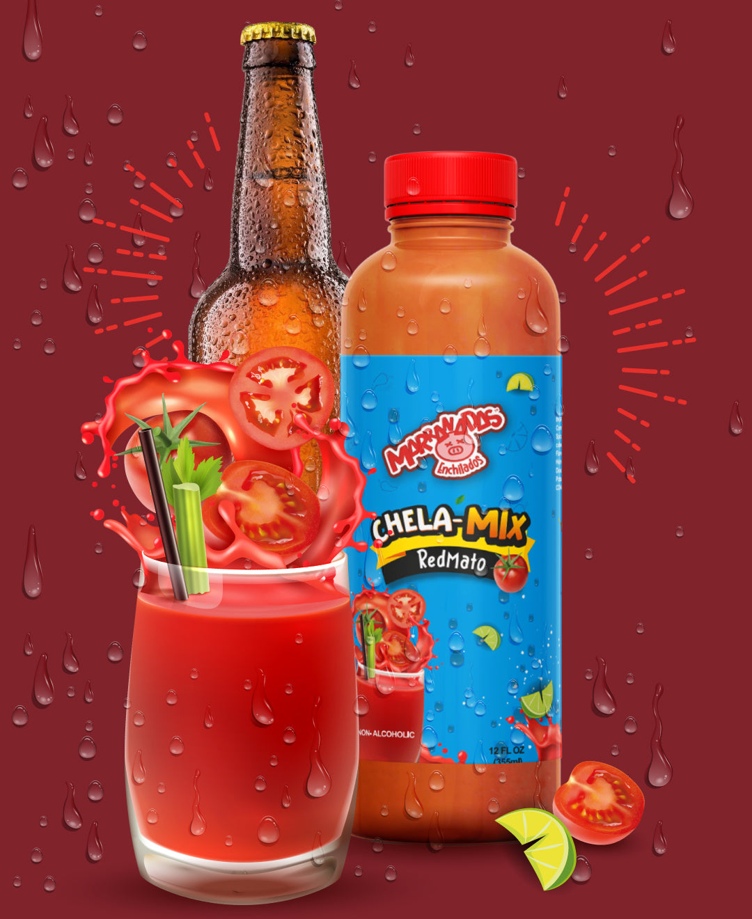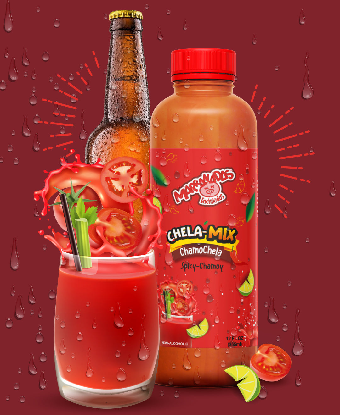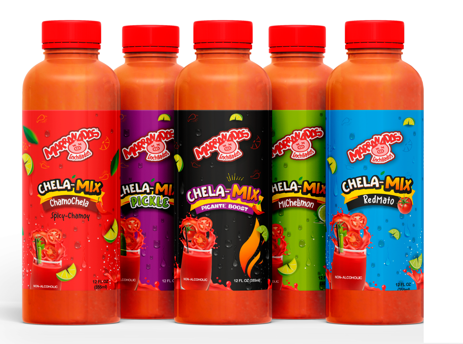Chela Mix is a fun, non-alcoholic beverage featuring five delicious flavors in one 12 FL OZ (355 ml) bottle—perfectly sized to share the taste of four beers without the buzz. Enjoy a playful twist on your favorite drink anytime, anywhere!